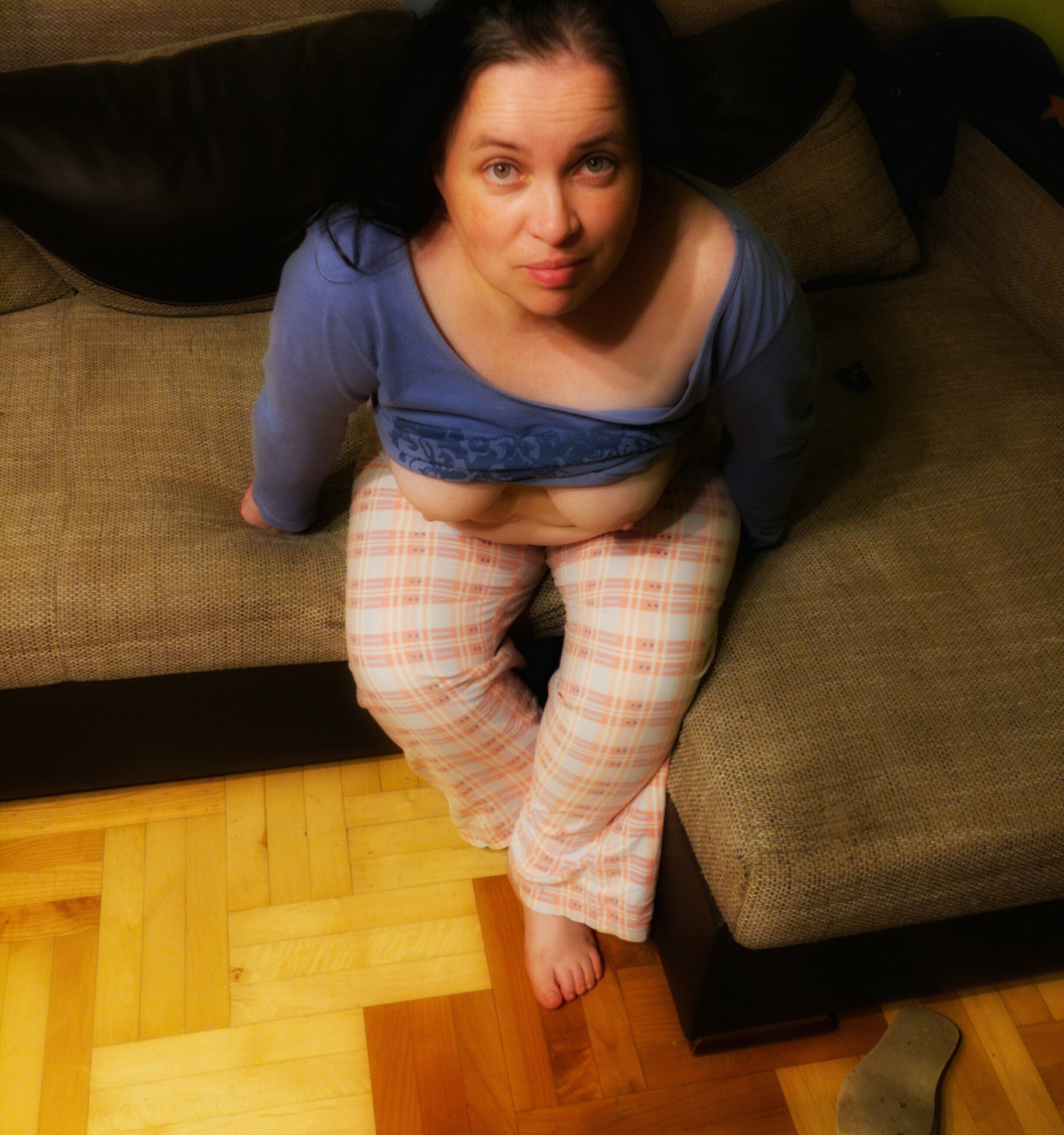 Lusciously curvaceous woman taking off her clothes