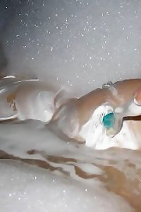 lush brunette pleasuring herself with a toy, displaying her curves